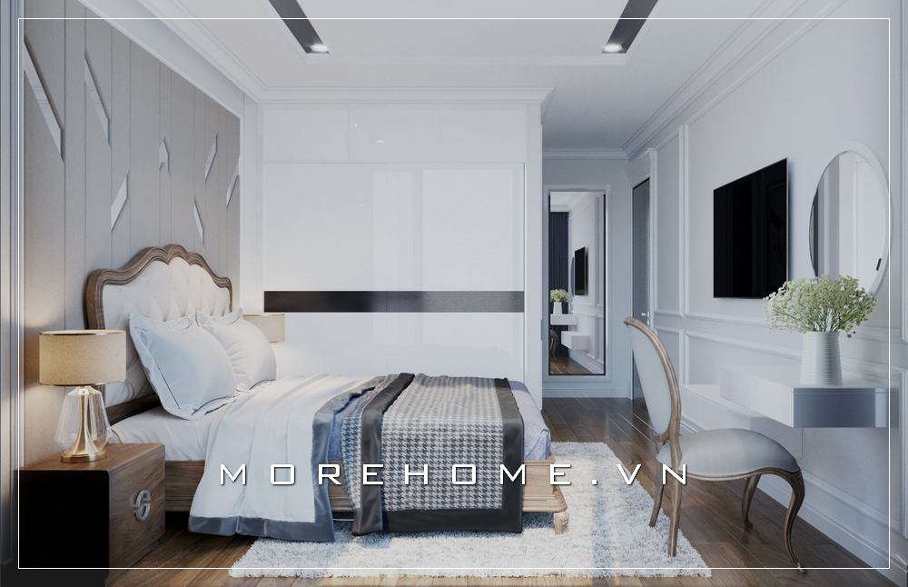 Trang trí nội phòng ngủ chung cư sang trọng, ấn tượng với toàn bộ nội thất gỗ óc chó nhập khẩu cao cấp