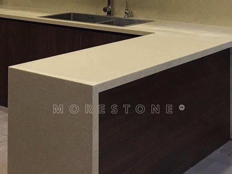 Chiêm ngưỡng mẫu thi công đá ốp bếp Himacs màu vàng nhạt tăng độ sang trọng cho không gian bếp chung cư, biệt thự, nhà phố.