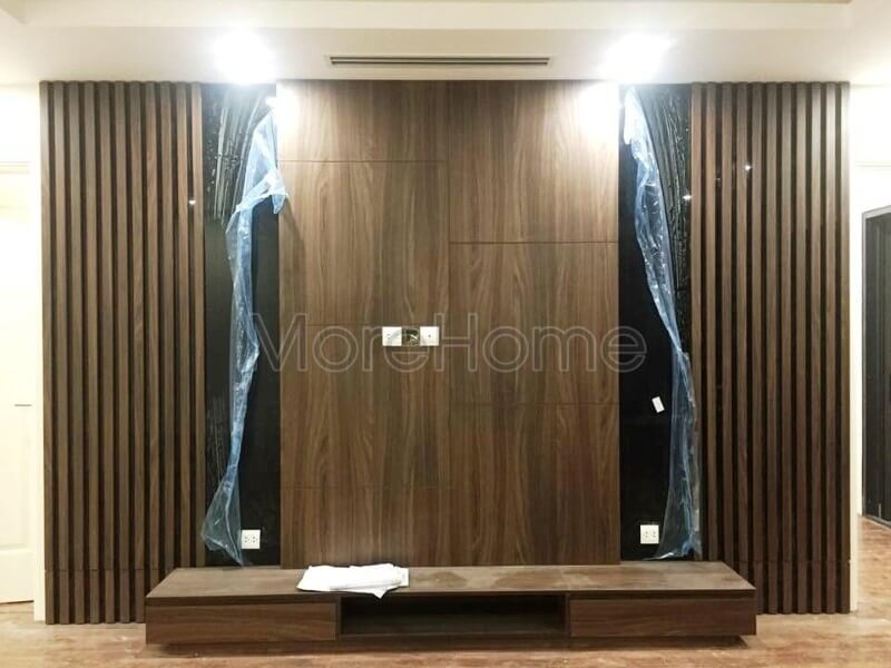 Thi công vách gỗ tivi tại phòng khách chung cư Imperia Garden Hà Nội