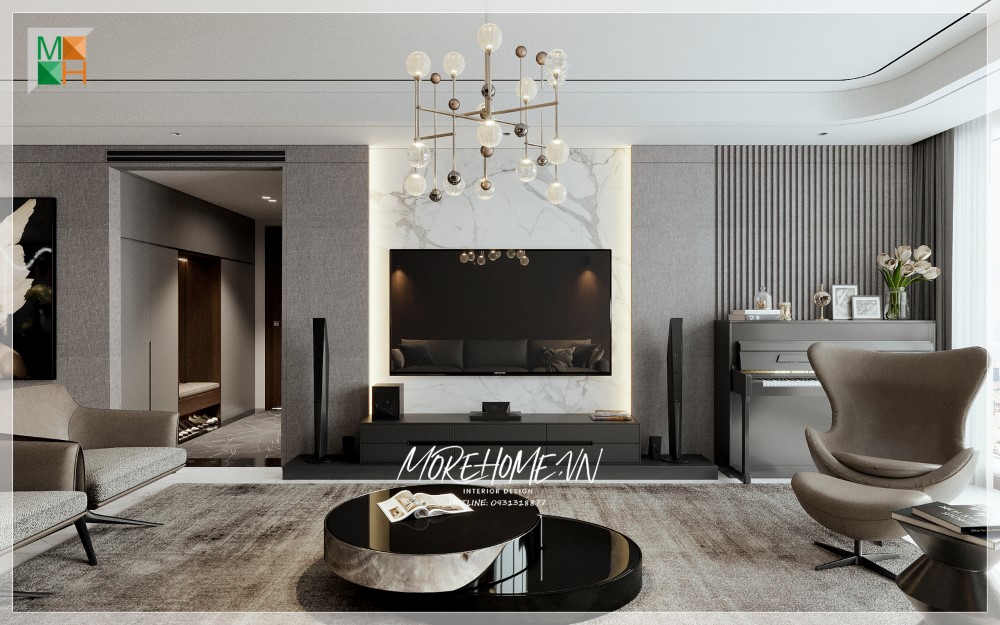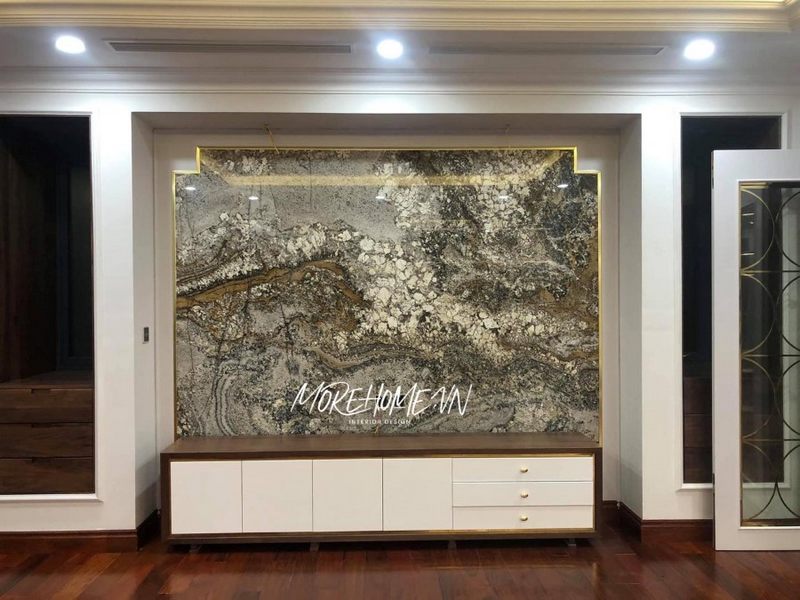 - Đá Marble ốp tường phòng khách