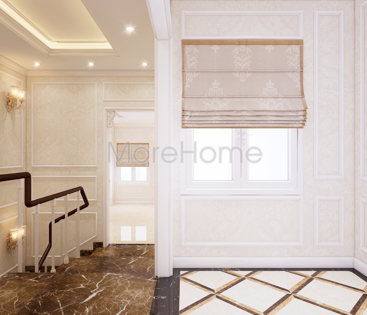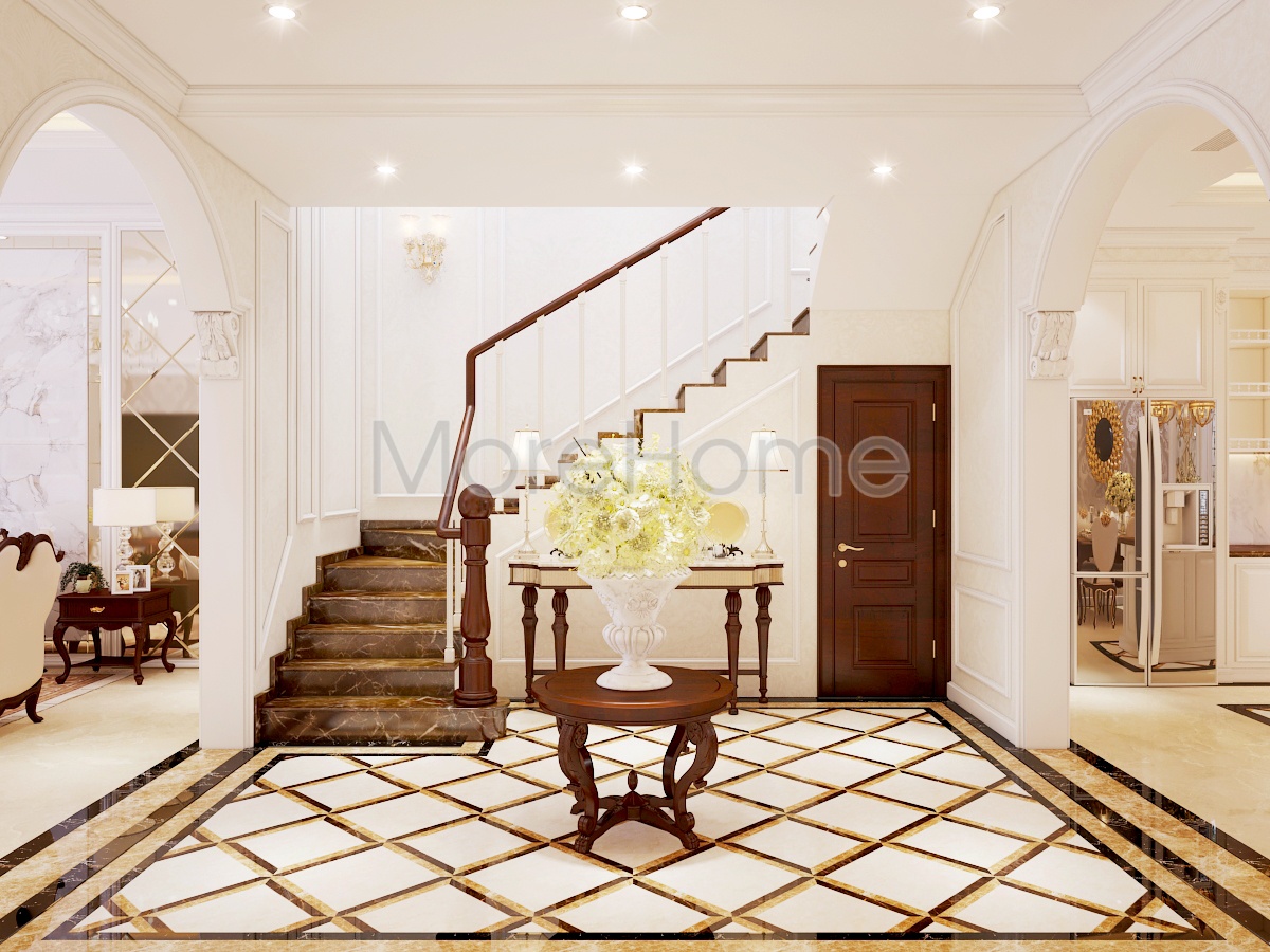 MoreStone tập trung nhấn mạnh vào màu sắc, kết hợp kéo léo giữa đá lát sàn và đồ nội thất phong cách tân cổ điển